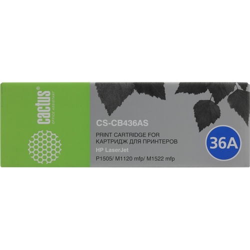 Производитель Cactus, Модель CS-CB436AS, Назначение для лазерных принтеров, Цвет красителя картриджа Черный (Black), Совместимость HP LaserJet P1505, P1505n, MFP M1120, MFP M1120n, MFP M1522n, MFP M1522nf